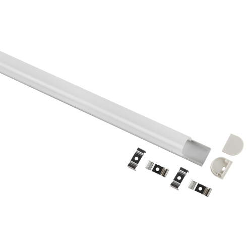 В комплекте накладной алюминиевый профиль 2420 24х20 мм 2 м, белый матовый экран из поликарбоната 2 м, 4 крепления и 2 заглушки.
