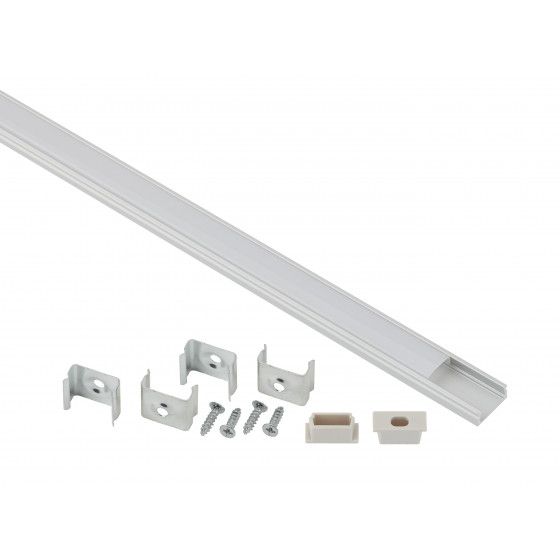 В комплекте накладной анодированный профилем CAB262 16х6мм, 2м, защитный экран 2 м, 4 крепления и 2 заглушки.