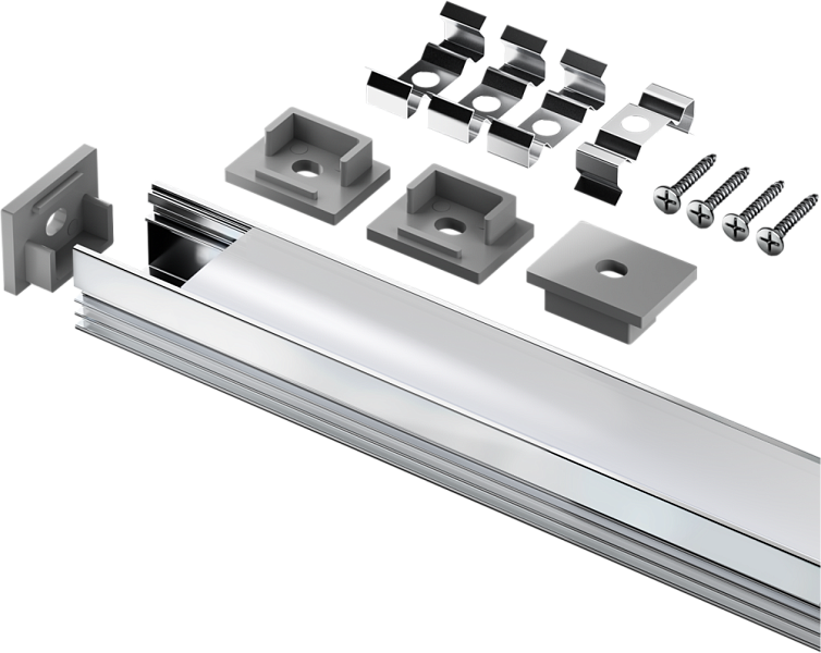 Алюминиевые профили в наборе с рассеивателем и аксессуарами NPR-SET позволяют интегрировать светодиодную ленту в Ваш интерьер и организовать декоративную подсветку любой сложности без монтажа ниш и других принадлежностей.