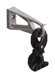 Комплект промежуточной подвески КОПМ 1500 представляет собой кронштейн с выступом в верхней части, не позволяющий зажиму перейти в верхнее положение.