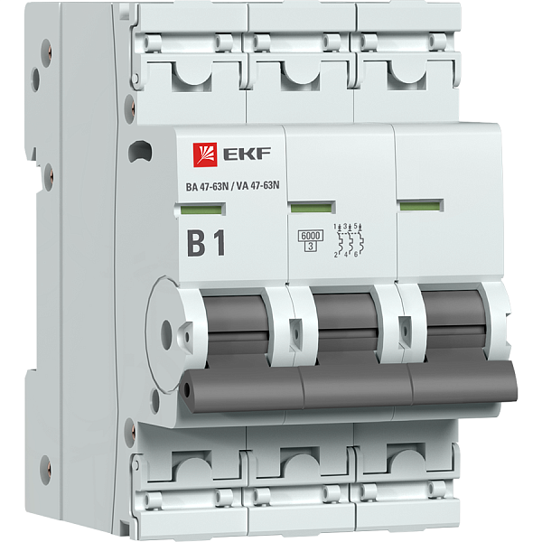 3P 1А (B) 6кА ВА 47-63N EKF PROxima