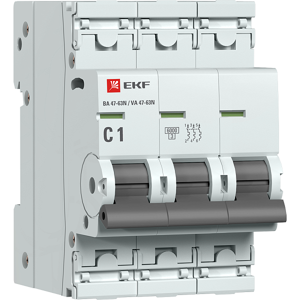 3P 1А (C) 6кА ВА 47-63N EKF PROxima