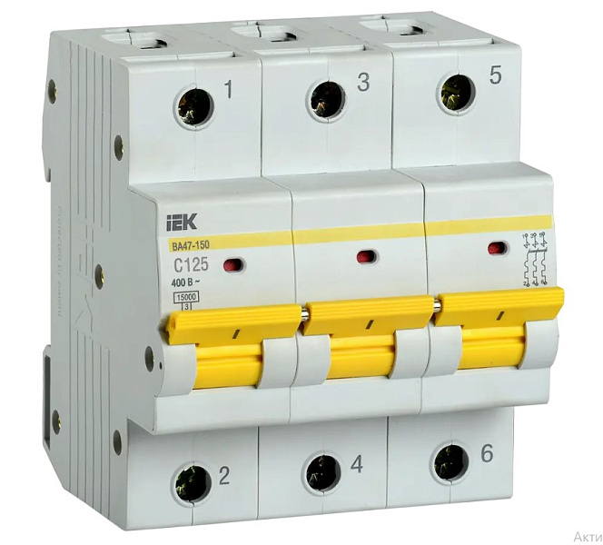 Автоматический выключатель 3P 125А (С) 15kA ВА47-150 IEK