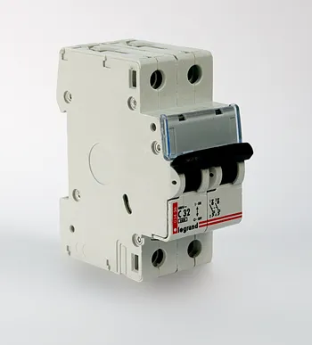 Двухполюсный автоматический выключатель серии DX3-E типа C (для защиты линий группового освещения и нагрузок с большими пусковыми токами (бытовая техника) в жилых и производственных помещениях).