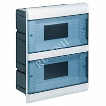 • щитки с двумя горизонтальными дверцами для скрытой проводки на 18 модулей;