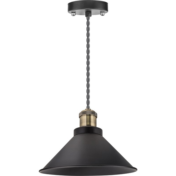 Абажур, потолочная чаша и декоративный корпус патрона светильника изготовлены из металла, патрон – из пластика, провод – ПВС в тканевой оплетке (1,5 м)