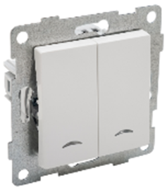 Механизм выключателя двухклавишного со светоиндикацией предназначен для коммутации двух цепей источников освещения.