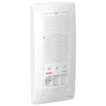 Устройство Systeme Electric (ранее Schneider Electric) BLANCA (цвет – белый) переговорное настенного монтажа предназначено для домофонных систем, питается от батарейки (3 элемента питания ААА х 1,5В).