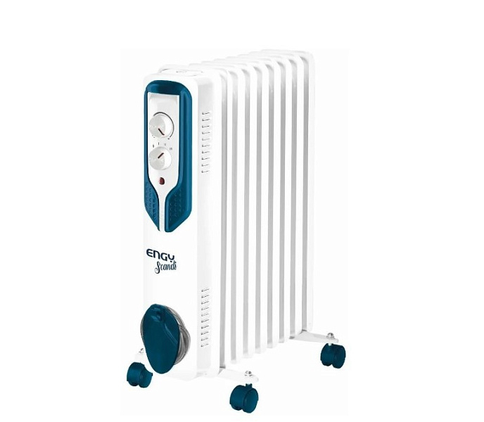 Масляный радиатор Engy EN-2507 Scandi, белый/синий мощность обогрева 1500 Вт установка напольная защита отключение при перегреве управление механическое особенности термостат количество секций 7
