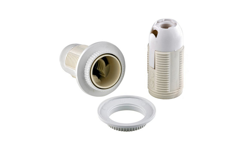 Патрон Е27 с кольцом термопластик белый