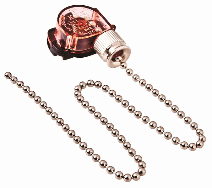 Выключатель для настенного светильника с хромированной цепочкой Длина цепочки: 270 мм Цвет: серебро Напряжение: 220 V, 3 А