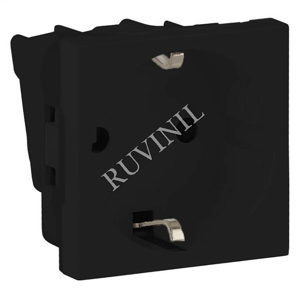 Розетка модульная с з/к и шторками 45х45мм Рувинил черный