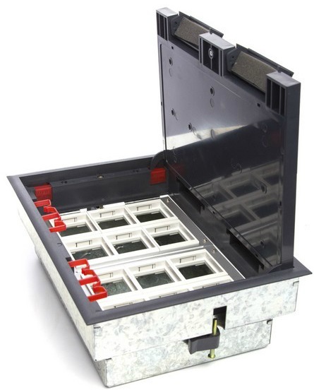 Системы лючков интегрируются с кабельными трассами, расположенными в полу или над фальш-полом и устанавливаются непосредственно в плиты фальш-полов или на залитые в бетон посадочные коробки Системы лючков интегрируются с кабельными трассами, расположенными в полу и/или непосредственно в закладных полах (в случае монолитного бетонного пола) и устанавливаются непосредственно в плиты фальш-полов или на залитые в бетон посадочные коробки.