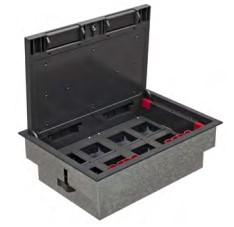 Системы лючков интегрируются с кабельными трассами, расположенными в полу или над фальш-полом и устанавливаются непосредственно в плиты фальш-полов или на залитые в бетон посадочные коробки