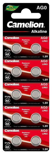 Элемент питания алкалиновый "таблетка" G 0 Mercury Free AG0-BP0%Hg 379A/LR521 Camelion 12808 — качественный товар, который вы можете приобрести в интернет-магазине DC-ELECTRO.