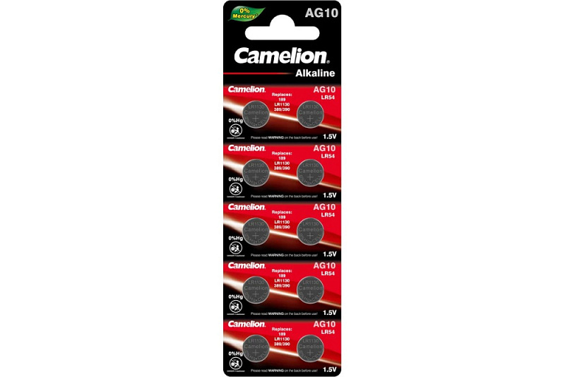 Батарейка Camelion G10 BL-10 Mercury Free (AG10-BP10(0%Hg), 389A/LR1130/189 батарейка для часов), напряжение 1,5В, емкость 78 мА*ч, кол-во в упаковке 10 шт.