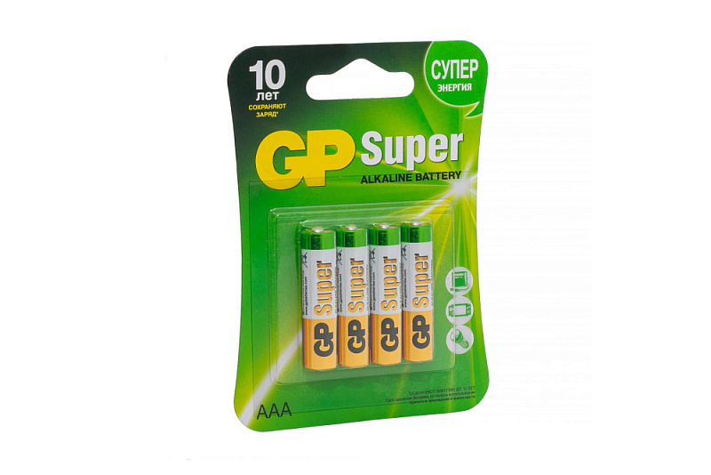 Технические характеристики GP Super Alkaline 24А AAA GP 24A-2CR4 Типоразмер AAA/мизинчиковая(R03;LR03;FR03) Элемент щелочной/алкалиновый(LR) Количество в упаковке 4 шт Напряжение 1.