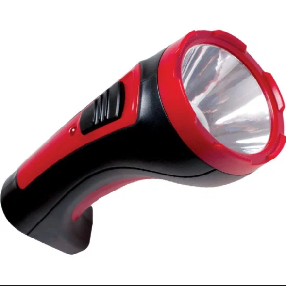 Классический ручной фонарик, имеющий собственную вилку для зарядки от сети.