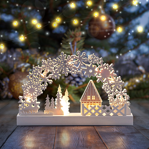 Настольный зимний светильник с домиком и елочками - это оригинальный подарок на Новый год и Рождество для Ваших близких.