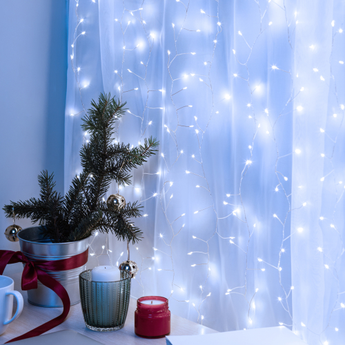 Светодиодная новогодняя гирлянда занавес Роса-мишура 3*2 м холодный свет 800 microled IP20 ЭРА ENIZ-800H