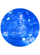 Гирлянда 100 LED, синий прозрачный шнур, расстояние между лампами 10 см, Длина шнура 10,8 метра.