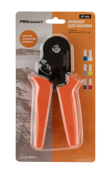 Кримпер HT-866 предназначен для опрессовки штыревых наконечников сечением 0,25–6 мм².
