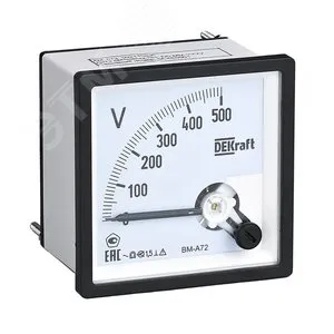 Аналоговый вольтметр серии ВМ; AC; прямое подключение; класс точности 1,5; диапазон измерений 0 - 500 В; габаритные размеры 72х72 мм.