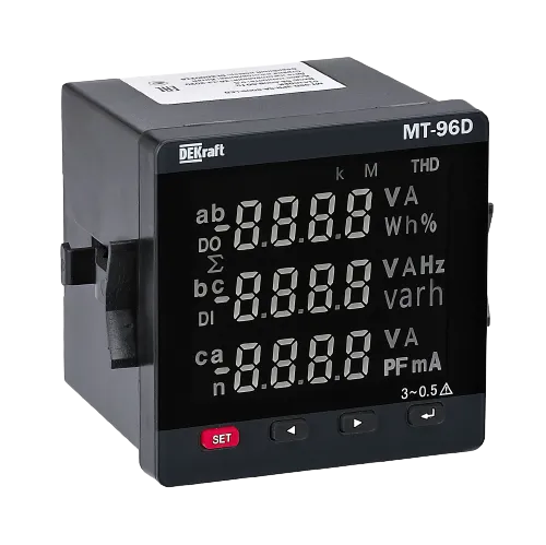 Мультиметр цифровой 96х96мм трехфазный, вход 600В 1А, THD, RS485, МТ-96D DEKraft