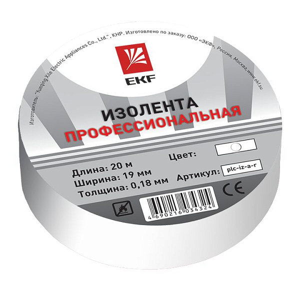 Изолента ПВХ 19мм х 20м белая EKF профессиональная