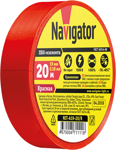 Электроизоляционная лента Navigator серии NIT на ПВХ основе предназначена для изоляции,