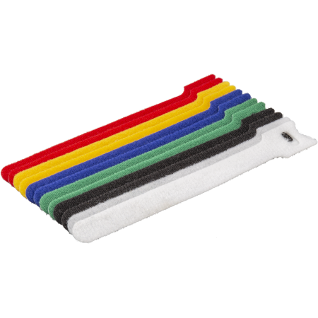 Застежка Velcro позволяет легко зафиксировать стяжку, отрегулировать усилие затягивания, а также использовать стяжку повторно