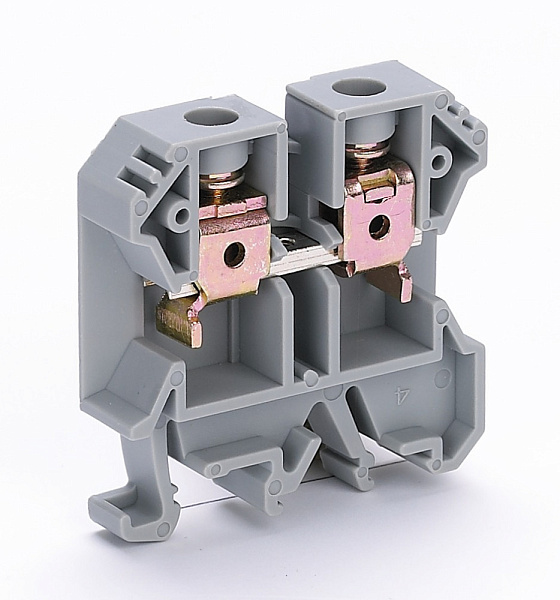 мм; цвет and ndash; серый; материал корпуса - полиамид; материал клемм и винтов and ndash; латунь; монтаж - защелкиванием на DIN-рейку; количество в упаковке and ndash; 50 шт.