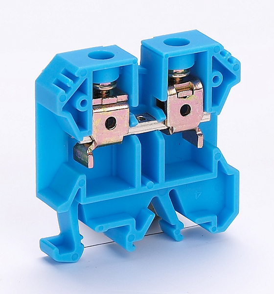 мм; цвет and ndash; синий; материал корпуса - полиамид; материал клемм и винтов and ndash; латунь; монтаж - защелкиванием на DIN-рейку; количество в упаковке and ndash; 50 шт.
