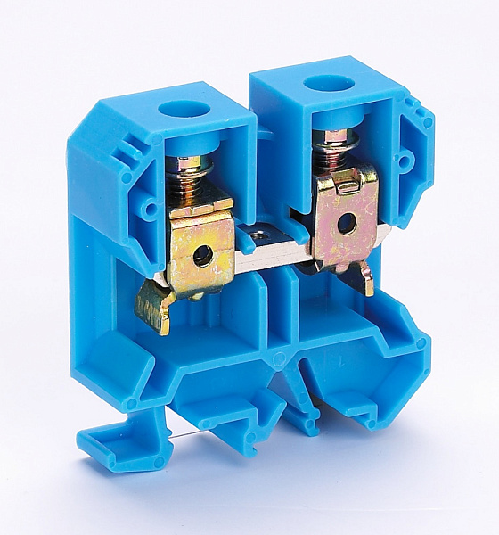 мм; цвет – синий; материал корпуса - полиамид; материал клемм и винтов – латунь; монтаж - защелкиванием на DIN-рейку; количество в упаковке – 20 шт.
