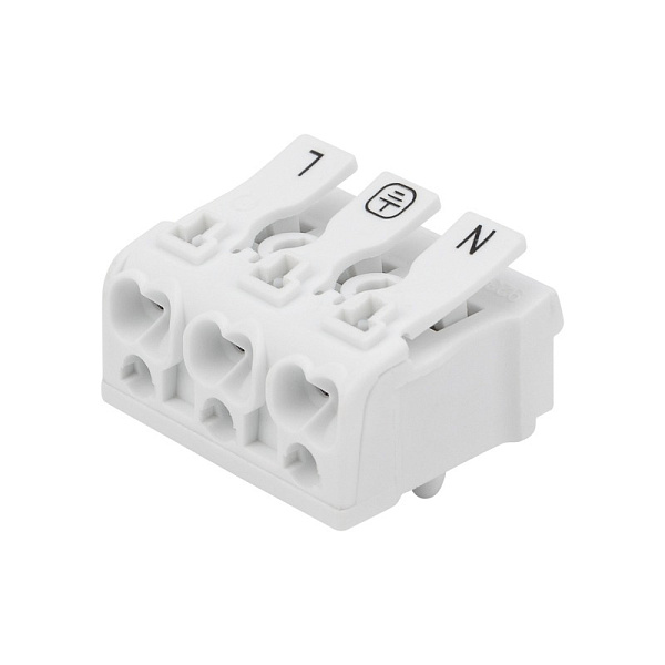 Пружинные трехполюсные клеммы с монтажными ножками REXANT предназначены для присоединения и ответвления одножильных и многожильных медных проводников в электрических цепях переменного тока напряжением до 450 В.