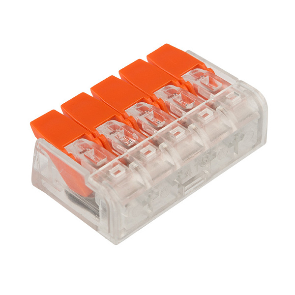 Многоразовая 5-проводная клемма REXANT — это один из самых быстрых, надежных и удобных способов монтажа проводников при небольшой потребности в пространстве в точке коммутации, в условиях нехватки и ограничения пространства.