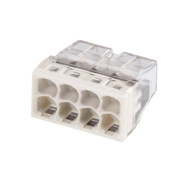 Состоит из пластмассового корпуса со встроенной втычной клеммной колодкой для зажима жил проводов.