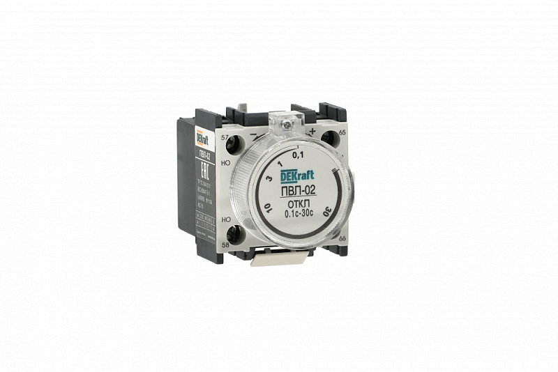 Приставка выдержки времени ПВЛ-02 для контакторов КМ-102 Dekraft; выдержка - 0,1…30 секунд; задержка - при отключении; ном.