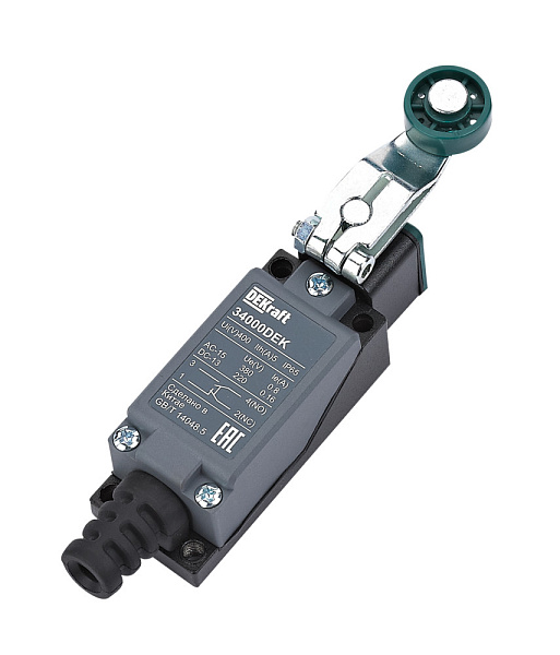 Концевой выключатель с группой контатков 1НО1НЗ, с роликовым рычагом из термопласта; имеет термопластичный корпус с двойной изоляцией, модульную конструкцию, облегчающую техническое обслуживание, а также компактную форму (в соответствии с DIN EN 50047-2020).