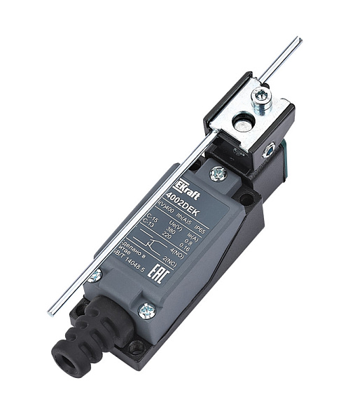 Концевой выключатель с группой контатков 1НО1НЗ, с вращающийся стержень регулируемой длины; имеет термопластичный корпус с двойной изоляцией, модульную конструкцию, облегчающую техническое обслуживание, а также компактную форму (в соответствии с DIN EN 50047-2020).