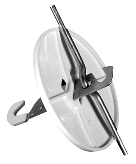 Комплект состоит из крюка, круглой крышки белого цвета и поперечной оси длиной 200 мм.