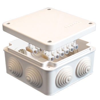Коробка распределительная для наружного монтажа, 105х105х56 мм; 7 выходов; 4 гермоввода.
