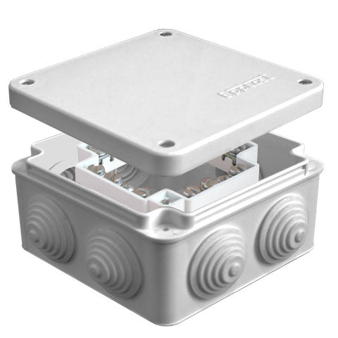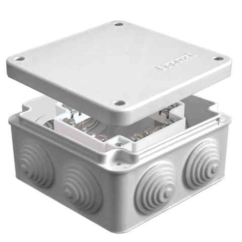 Коробка распределительная для наружного монтажа, 105х105х56 мм; 7 выходов; 4 гермоввода.