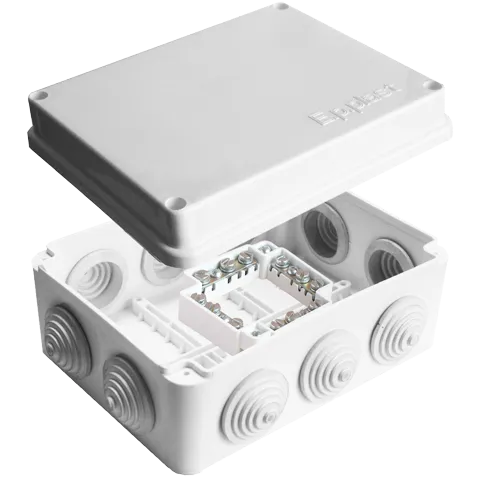 Коробка распределительная для наружного монтажа, 150х110х70 мм; 10 выходов; 10 гермовводов, клеммная колодка 16А, 24 контакта.
