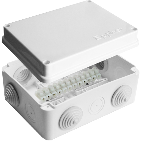 Коробка расп. ОП 105х105х56мм IP54 7 вводов (4 гермоввода; колодка 16А) белый E.p.plast