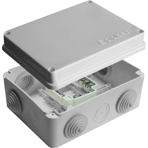 Коробка распределительная для наружного монтажа, 150х110х70 мм; 10 выходов; 6 гермовводов.