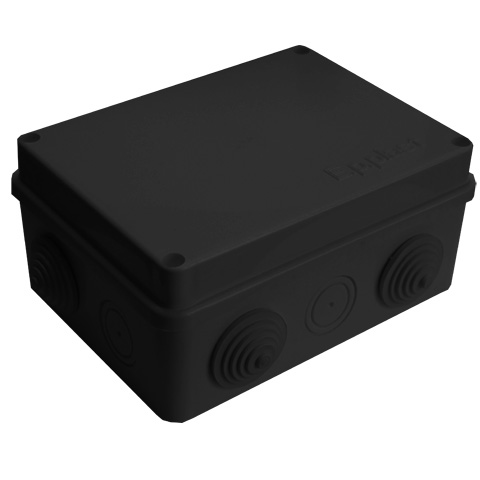 Коробка расп. ОП 105х105х56мм IP54 7 вводов (4 гермоввода) крышка защелк. черный E.p.plast