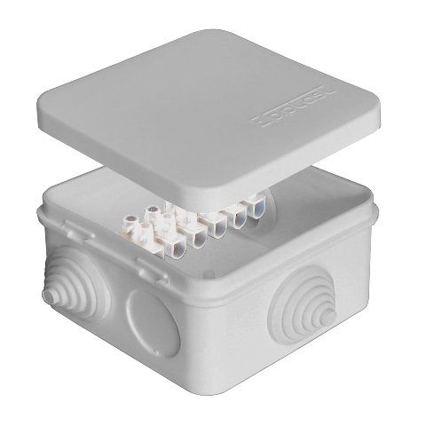 Коробка расп. ОП 84х84х45мм IP54 7 вводов (3 гермоввода; колодка 10А) белый E.p.plast
