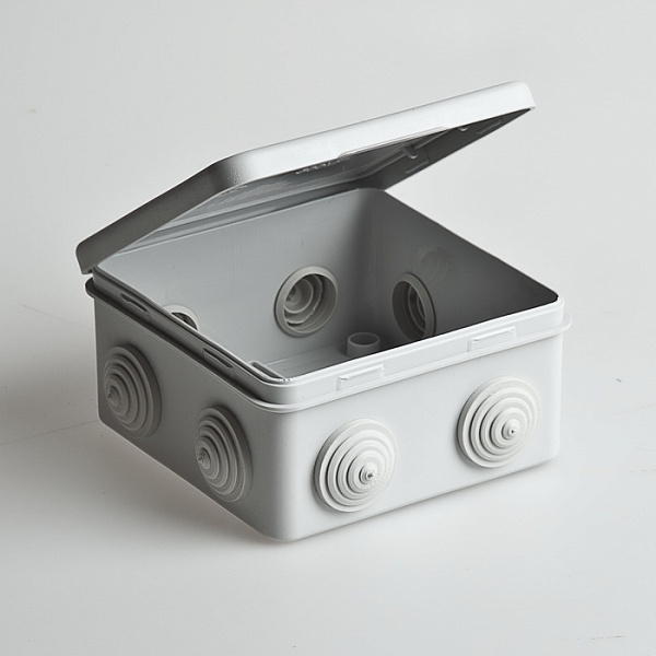 Коробка расп. ОП 100х100х50мм IP54 8 вводов (откид.крышка) Рувинил серый