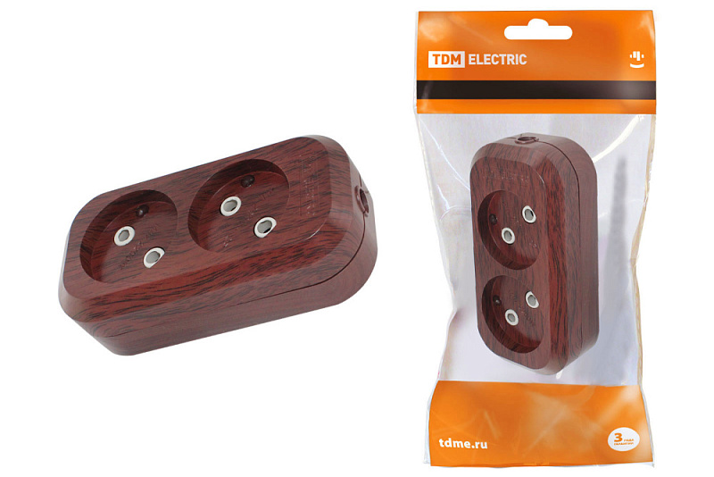 Колодка розеточная 2 гнезда 2П б/з 10А 250В «Эко» (бук) TDM SQ1806-0059